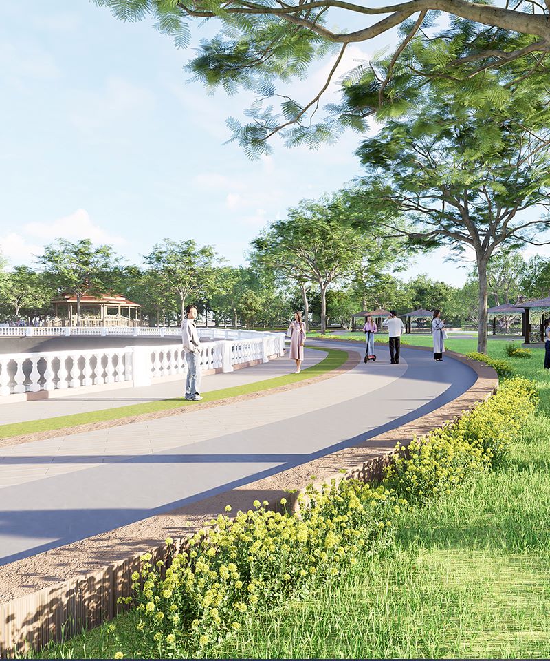 The Uvarsad Lakefront Development aims to rejuvenate the lake's ecological and cultural heritage while creating a vibrant community space. The design integrates waterfront ghats, viewing decks, market areas, and event spaces that promote social interaction, tourism, and local entrepreneurship. Emphasizing sustainable practices, biodiversity restoration, and cultural expression, the project enhances the lake's role as a hub for recreation, education, and economic growth . The approach blends tradit ional architecture with modern amenities, ensuring environmental stewardship and fostering a sense of belonging among residents and visitors alike.